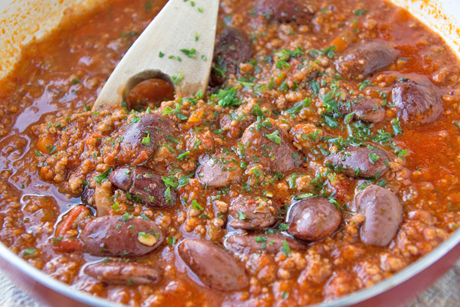 Ein schnelles und sehr schmackhaftes Mittagessen ist dieses Faschiertes mit Käferbohnen. Hier das Rezept dazu.